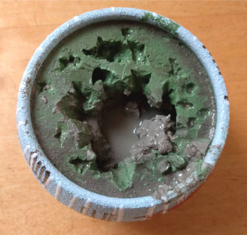 Back at home I soaked the whole thing in a bucket of warm water for 10 minutes and was able to pull out the flowers, but even after poking it with a knife for awhile there was still a thick layer of hard foam and underneath that clay. Ick.
