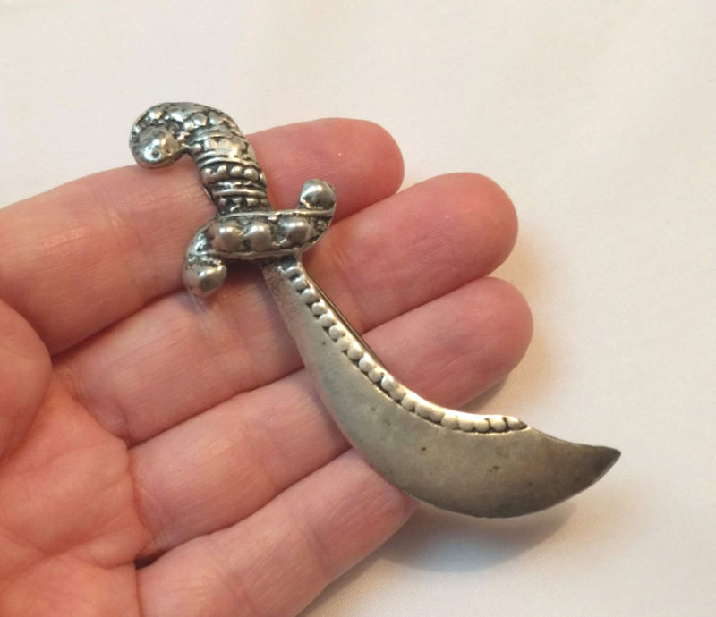 This cool scimitar pin is sterling silver and 3 inches long. Wouldn’t it look cool on a hat?