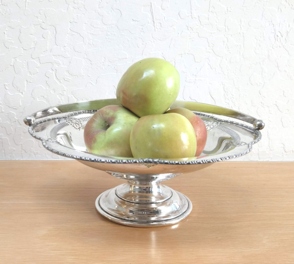So when I spotted this large 10.5″ diameter silverplate compote at my neighborhood thrift store and it ticked all the boxes I had to get it!