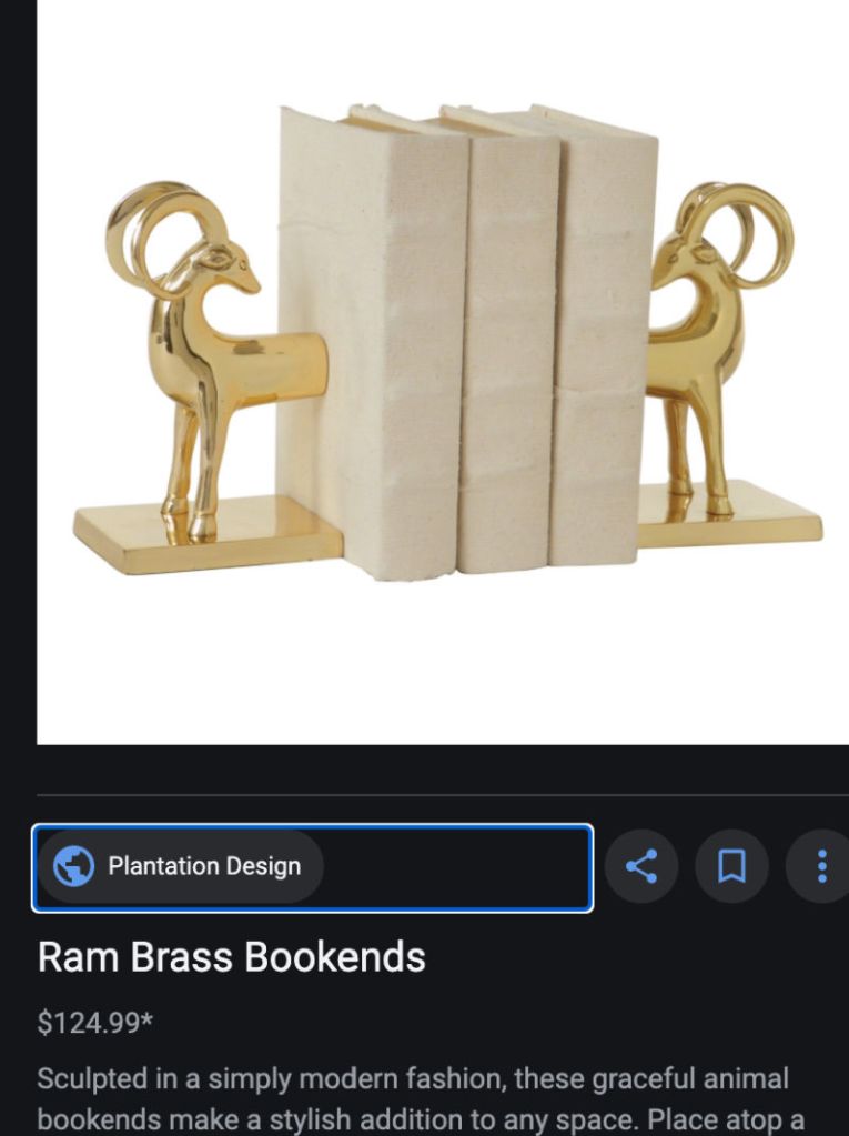 Found these modern brass ram bookends at my neighborhood thrift store. Gosh they were priced way up (almost $20!), but are heavy, in good condition and the type of thing that sells for me.