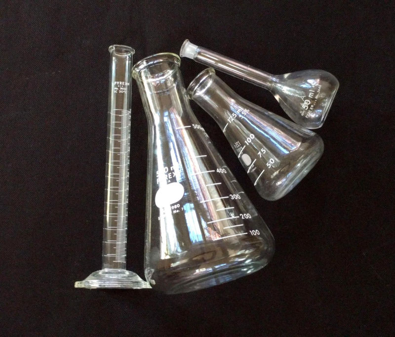 My few previous listings of vintage lab glassware sold quickly so I’m hoping it’ll be the same with this attractive eclectic lot that’s ready for flowers or libations. (I think this is the last of the lab glass in my backlog.)