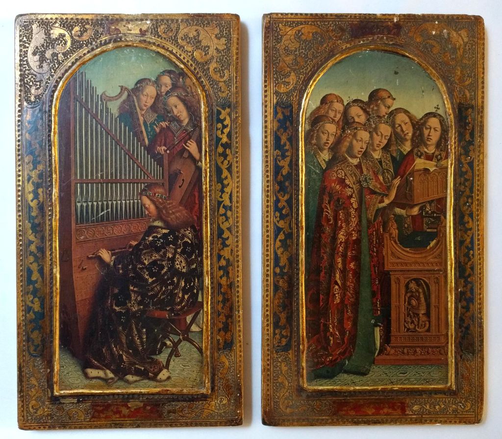 These charming Italian florentine plaques were hiding on a bottom shelf tucked behind other items. Honestly I walked past them three times without seeing them! Finally I spotted an edge of the wood that intrigued me and pulled them out. I love this kind of thing with Old World appeal.