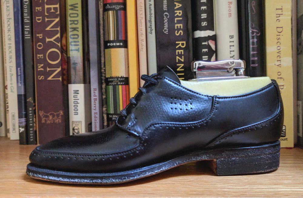 Yesterday I found one such gem that my husband said is the BEST thing I’ve ever bought! It’s a perfectly made mid-century leather and Corfam shoe cigarette lighter.