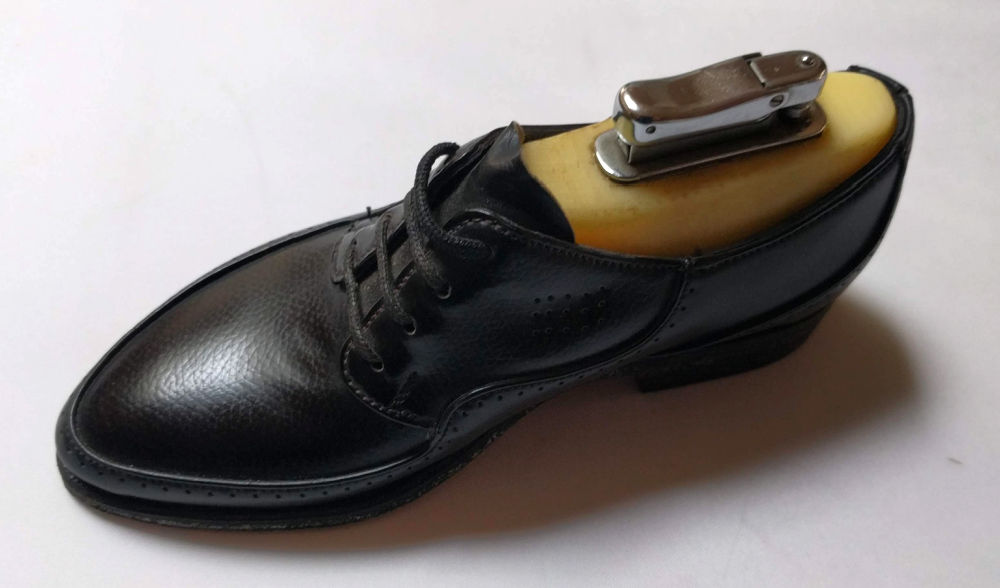 Perhaps this was an early prototype made into a lighter and given to execs of the “charter manufacturers” of Corfam shoes?