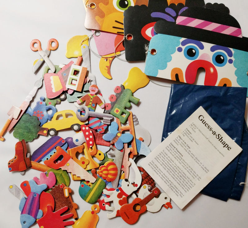 Book wise I didn’t find anything exciting. Not one thing. But I did find this 1982 West Germany Ravensburger game called “Guess-a-Shape.” It’s geared towards children ages 4-8. Seems rather tame for 8 year olds, but I think for young children it would be fun. (My husband tested it out and was pleased to do well!)