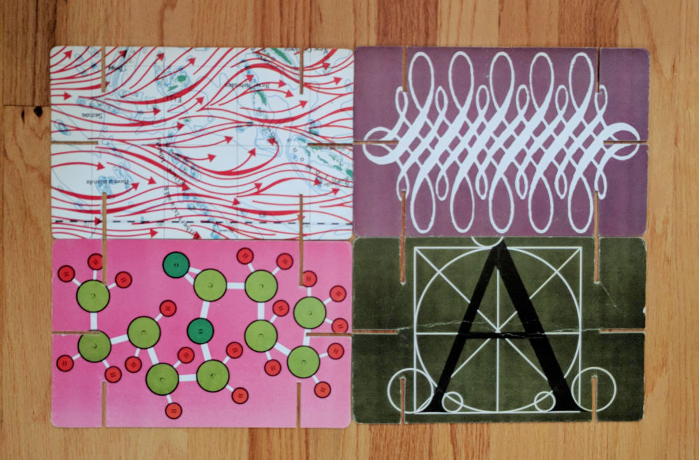 But the real sleeper was a very worn box with large interlocking cardboard pieces with cool graphics tucked amongst some children’s books. Gosh these were fab. I tossed them in my bag.