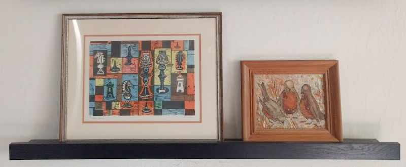 Now in the “I’m keeping this one for a while” category, I bought a mid-century modern painting of birds signed “Meier” from an eBay seller.