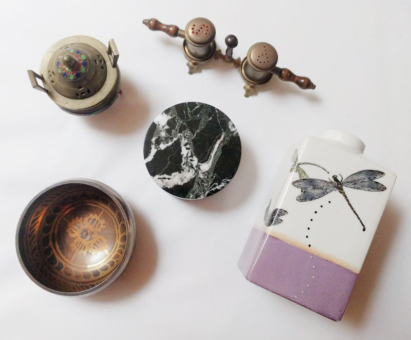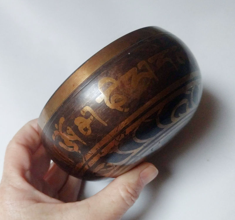 This brass bowl was another exotic thing. When buying metal items weight plays a factor for me and this small bowl had a delicious heft (almost a pound). Turns out it’s one of those Nepalese singing bowls traditionally used for meditation and prayer in Buddhist communities. It would normally come with a wooden mallet or stick.