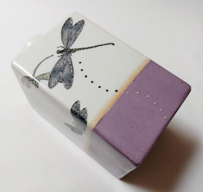 I liked the looks of ceramic vase though I wasn’t sure after seeing the “fabrique en chine” mark. Still it was quite fetching. I googled “Fabienne Jouvin, Libellule” and was pleasantly surprised at some of the listing prices. Turns out this originally had a lid, but with or without it, I’m glad I put it in my basket.