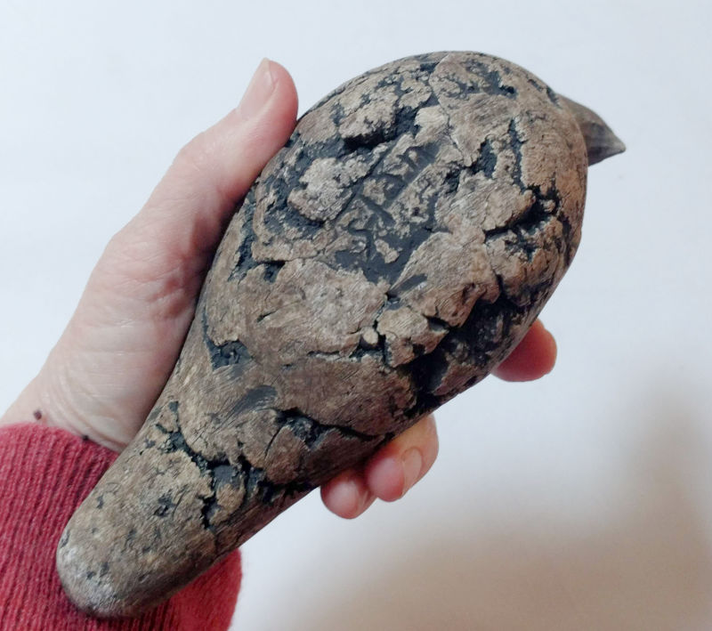 Still, I am discovering I tend to look for different things than most people. Like today. I picked up this heavy, textured clay pigeon/mourning dove. I thought it was fabulous. It was marked “Stan” on the bottom and I assumed it was a student piece. Au contraire! Turns out it was made by Stan Langtwait who created “Shapes of Clay” from the 1950s till his death in 1980. These are collected, coveted pieces made from clay from Mt. St. Helens.