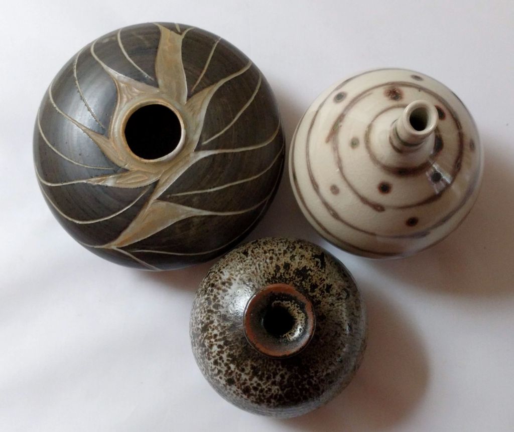I also started listing all the pottery vases/weed pots from my last post. I put some in groupings. I thought these three looked handsome together.