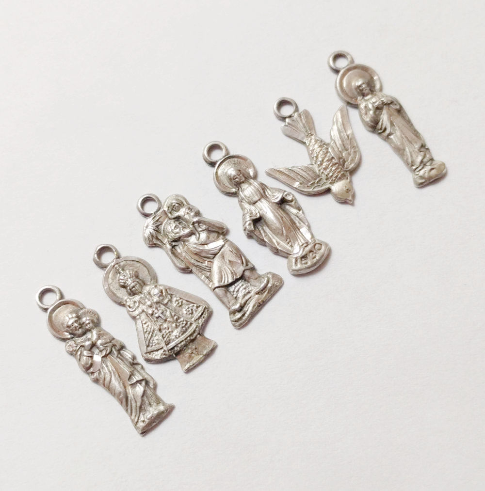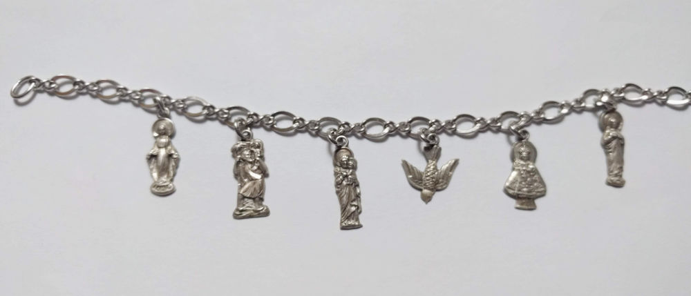 On eBay, I bought a little bracelet with sterling silver Catholic charms/medals. The bracelet itself, while marked sterling on the clasp, was magnetic (not sterling!), very light and newer than the medals. A piece of junk really. (Sigh.)