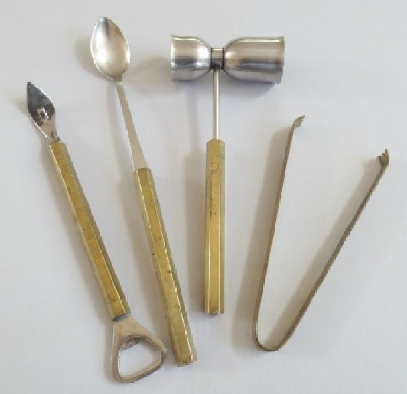 With the popularity of the Mad-Men era bar cart and cocktails I’m always looking for vintage barware items. One of my favorite thrift store scores was a set of four MCM brass Danish bar tools a few years ago.