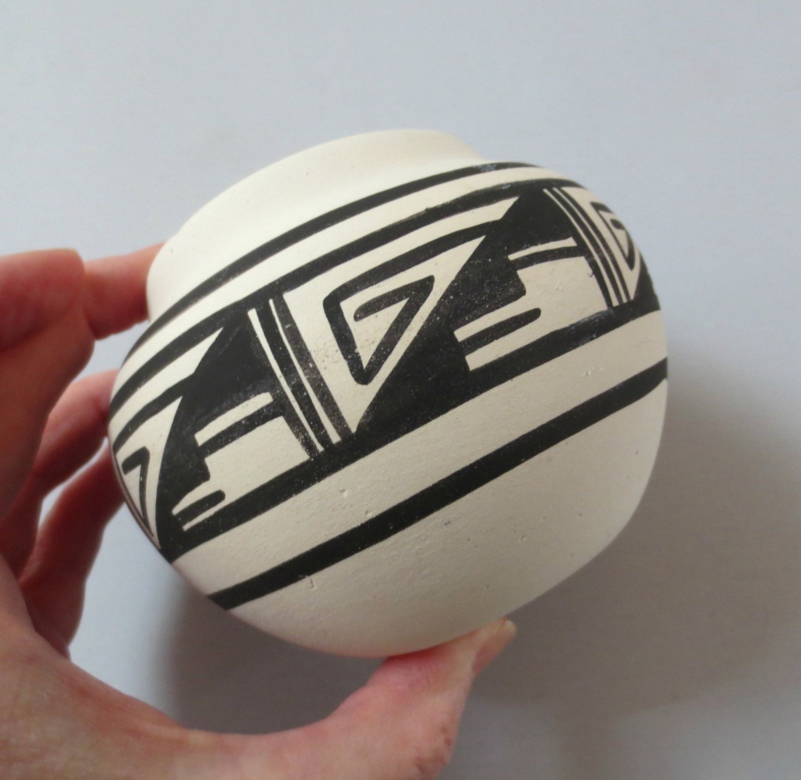 Recent Find: This small Navajo pot is signed “Little.” It’s extensively carved all the way round. I may add this to a lot.