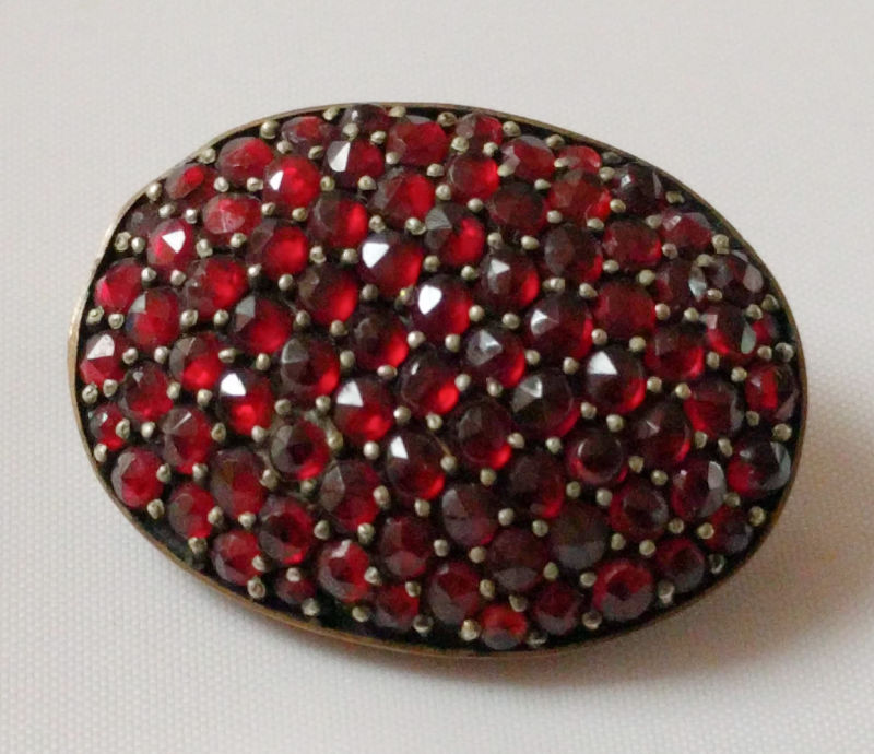 Nowadays getting real mail is rare. But this past week I got a card from a girlfriend, a favorite magazine and a package! Was delighted with all three. And the package? It held this old Bohemian garnet pin I’d won on eBay. It’s small and plain of design and yet encrusted with tightly prong-set garnets which gives it a rather luxe look. This pin dates to the Victorian/Edwardian period. I’ll put this in my Etsy store at some point.