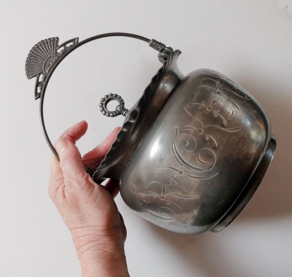 Still I have had some success selling older, quirky silver plate pieces in the past so I decided it was worth a shot. And it would be fun to see it given a new life…perhaps as a container for dog biscuits or as a planter.