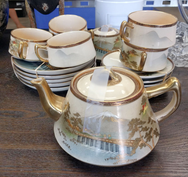 I saw this sweet Japanese china tea service with an image of Mt. Fuji and thought of my 90-year-old dad. He had been stationed in Japan for some time during the Korean Conflict and has fond memories of the country. The set (missing its creamer) was priced at $41 and is in beautiful condition, but realistically not worth much and the hassle of packing and shipping this would be HUGE.