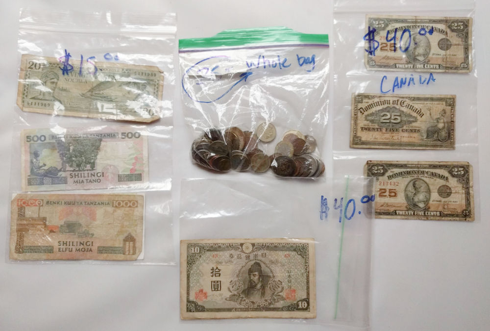 On Freecycle someone posted a listing for “foreign money” and no other details. I have sold lots of foreign money before and I was happy to have this…whatever pieces were included. (And free is the best price!) And it turns out that some of the money appears to be worth selling on its own. I’m guessing the previous owner tried to sell this at a flea market or yard sale as there were prices marked on the baggies. I’ll need to do research to figure out what I’ve got!
