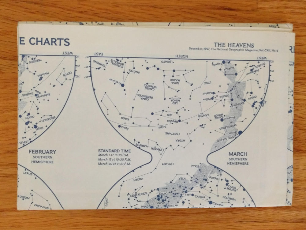 When I headed back into the upstairs office I spotted this 1957 “National Geographic” astronomy chart in a box of papers and threw it on my pile. Turns out these sell for $15+. Current listings are at $25-50.