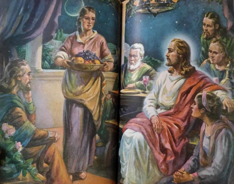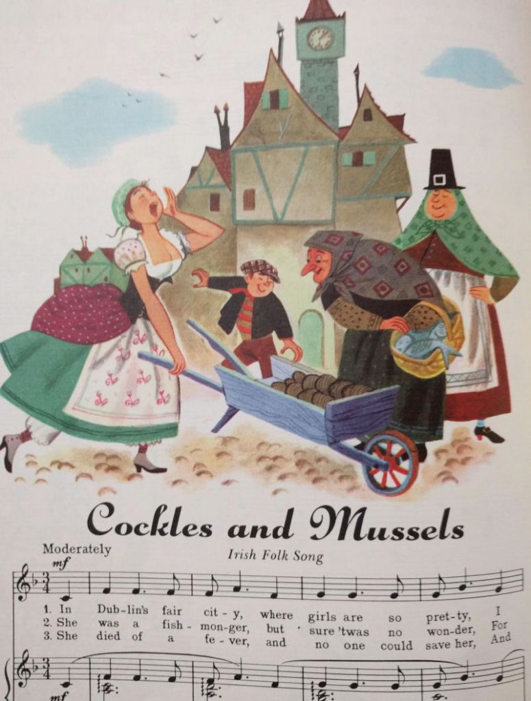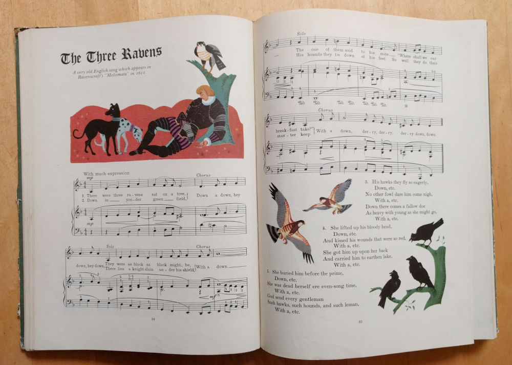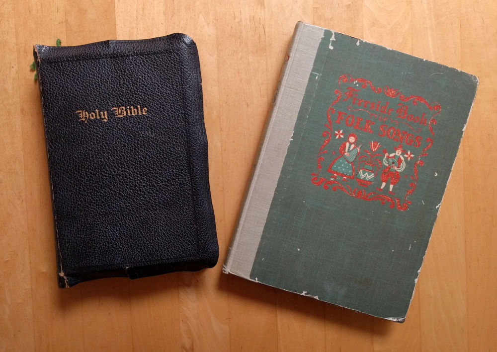 There were a ton of books scattered throughout the house and I should have spent more time with them, but I did like this 1943 Bible with great illustrations and the Fireside Book of Folk Songs which charmed me with its pictures and zany songs. The covers are a bit rough, but the insides are good.