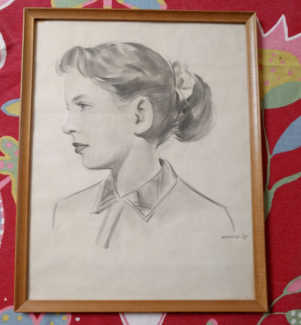 I wondered if this 1957 pencil/charcoal portrait was the wife. Such a sweet picture.