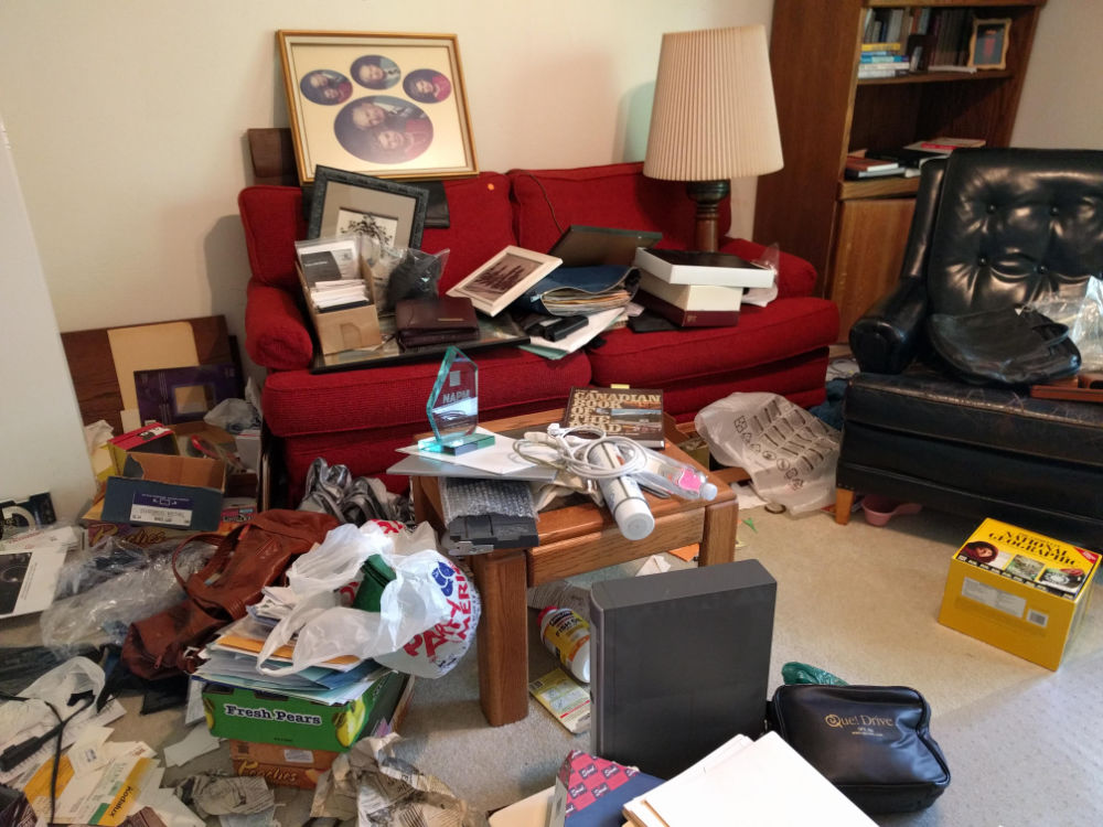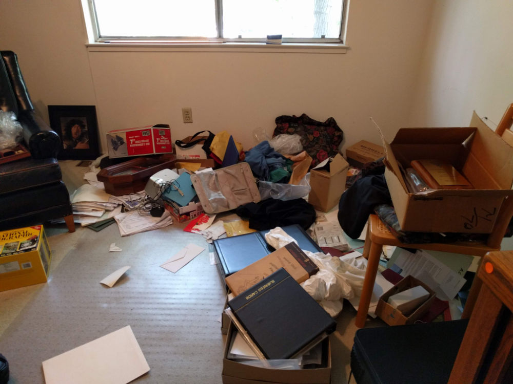 Well it WAS a disaster zone. Not a lot left and half of it on the floor! I was surprised to see all the family photo albums, personal papers and awards left behind. That was a bit sad. There was all the stuff of a long, well-lived life now being strewn about and ground into the carpet.
