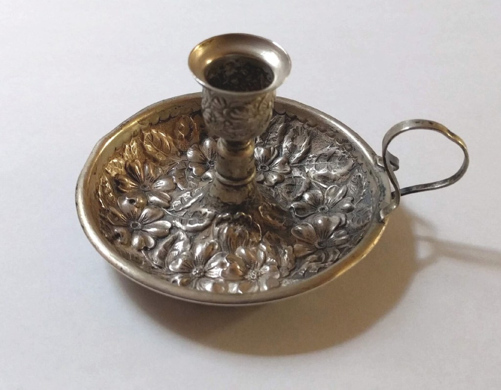 I just found out that a cousin-in-law of mine died in August and it’s hit me like a ton of bricks. Kurt was kind and funny and we shared a loved of vintage and antique things. Every visit back to my hometown (nearly 3000 miles away) meant a visit to Kurt’s tiny collectibles store where we’d chat about our recent best finds. Naturally I also bought from him! One of my favorite purchases from his store was this tiny 1800s Gorham candlestick. It was fabulous.