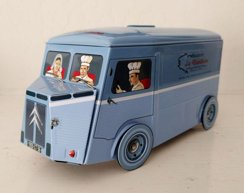 Here’s what I bought: I thought this French biscuit tin/bank of a Citroen delivery van with movable wheels was quite fun. This was in the toy section. These appear to be somewhat uncommon in the resale market.