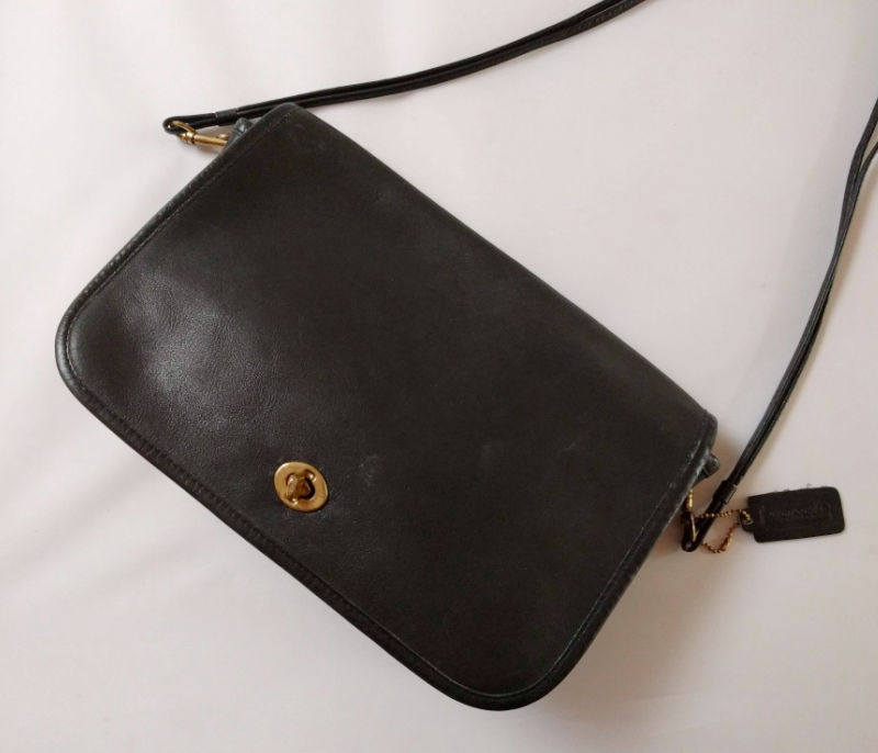 I walked into the GW (Goodwill) boutique store without much hope. The small store no longer sold any hard goods, just clothes, accessories, new jewelry and random vintage books for $4.99 each. I haven’t bought anything here in years so I was thrilled that I was drawn to a few things almost immediately and both vintage. The first being this Coach shoulder bag. It was made in their New York City plant in the 1970s! Outside it’s still lovely. Inside I found bits of tobacco (which I will clean out) and the interior pocket has weird bleach-type marks inside the pocket. Can’t figure that one out! Still there’s no egregious damage and it still has its hang tag!