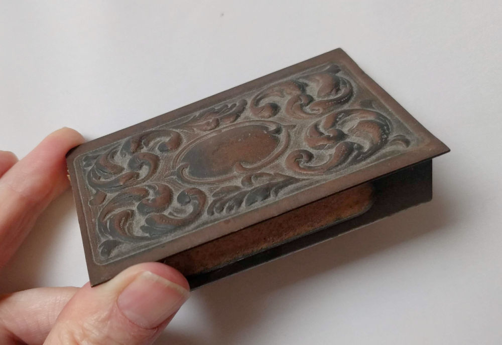 Later I received my first 3-star review! I was gobsmacked at her reason. She had bought an antique metal vesta case that was used back in the day to house a box of matches. This one came with an old empty Swan Vestas matchbox. Even though I had written “AS IS” in listing title and description, the buyer took exception to the fact the the striker on the cardboard matchbox was unusable. And to be honest, it never occurred to me that someone would expect an old used box of matches to have any viable striking area left! But since I allow returns I’m not sure why she just didn’t opt to return it rather than leave a negative review. Sigh!