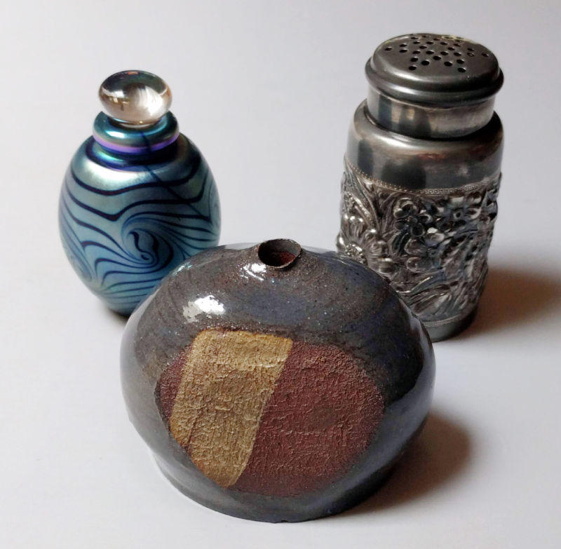 This signed Robert Eickholt feather perfume bottle (dated 1999) was a stellar find. Eickholt’s a master glass blower with decades of experience. Beautiful and in beautiful condition his collectible bottles easily sell for $100 and up. Wouldn’t it make a wonderful Christmas or Hanukkah gift?