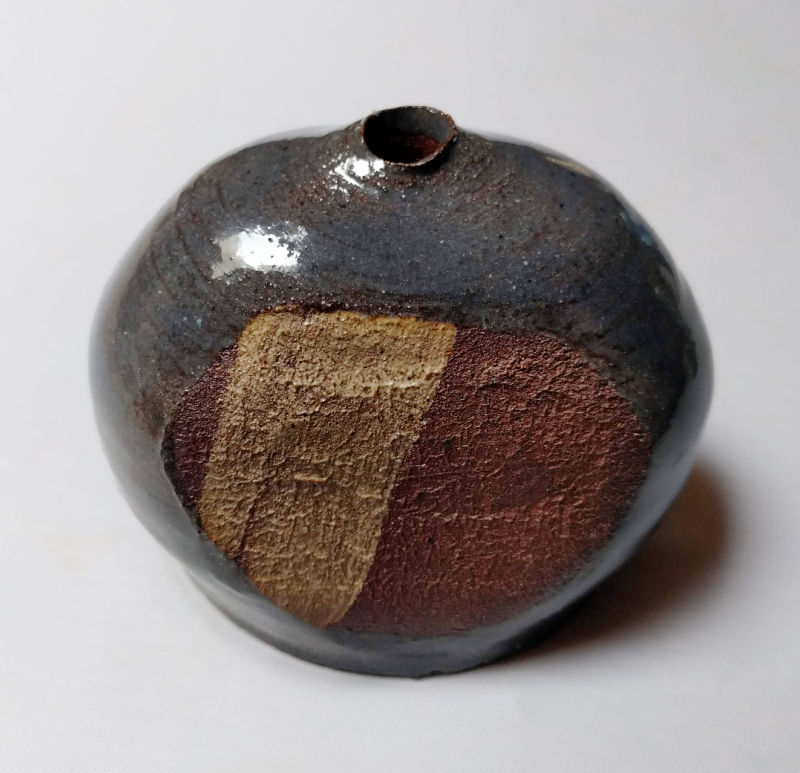 And lastly there’s this small intriguing weed pot signed Haynes and dated ’66–a true mid-century modern brutalist piece. I think this is fabulous. No, it won’t appeal to everyone, but it doesn’t need to. This is the real deal. Both sides have cut outs that reveal gold and rust details.