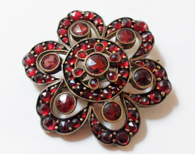 Here’s one from my antique bohemian garnet jewelry collection. If you’ve followed me for any length of time you’ll know I adore old garnet jewelry. Diamonds are my birth stone, but it’s old garnets that make my heart sing. I’ve got this one listed…for now! I may change my mind.
