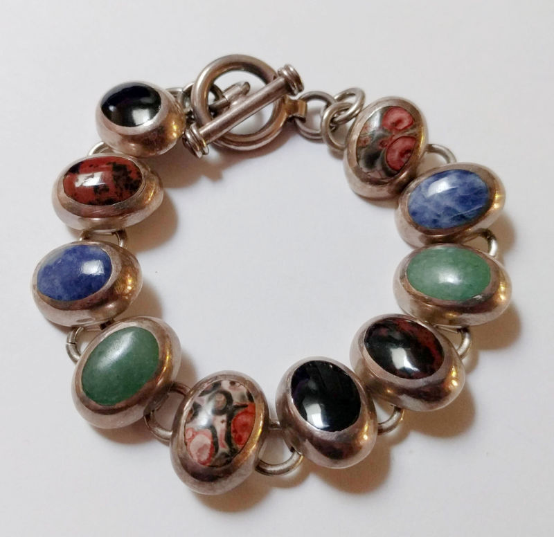 Vintage sterling silver pieces are also high on my list. This Mexican sterling silver and stone bracelet is both pretty and sturdy–a neat boho piece that looks great layered with other silver bracelets. Sadly, I don’t seem to be wearing bracelets as much these days. Maybe you are?