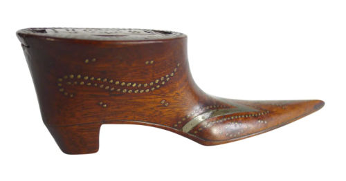 P.S. You may be wondering why I thought the shoe snuff box was a reproduction. For a 100+ year old item there was no wear. None. And you’d expect to see some wear/discoloration in a snuff box. And the well for holding the snuff was very, very small/shallow which is atypical in shoe snuff boxes. It should have been much larger and deeper to be useful. I didn’t spot either of these in the photos, but in person as I handled the item I couldn’t shake the feeling that this wasn’t old or even a real snuff box but a nicely made reproduction. I was thankful for the option to return it.