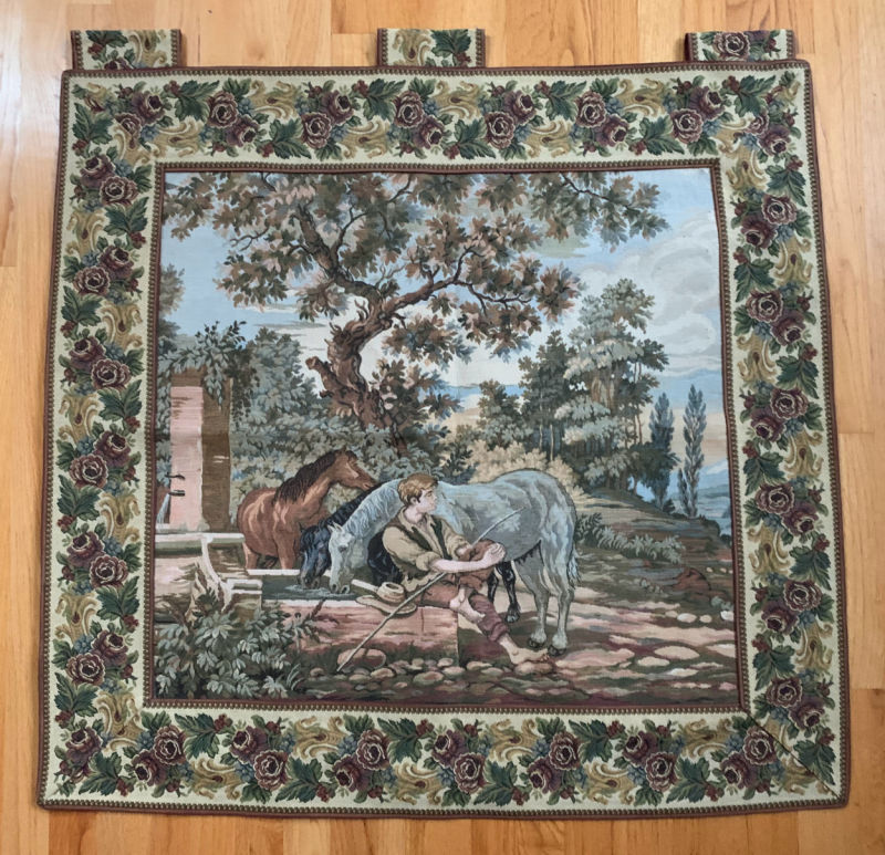 This large European woven tapestry wallhanging is not my kind of thing, but it’s quite nice with that “old world charm” look. But I am wondering if I made a mistake with this. Will it find a new home?
