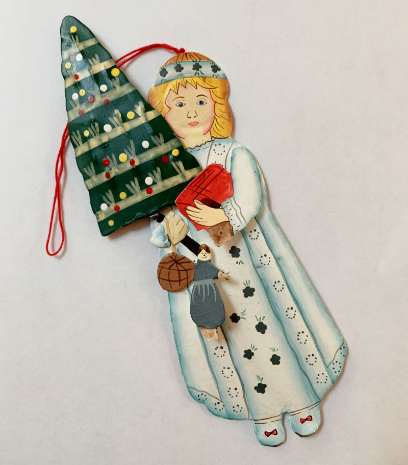Not finding much these days, but I did like this larger hand-painted tin ornament that I think possibly represents St. Lucia without the crown of candles. She is a fabulous piece of folk art painted on front and back. I’m hoping she finds a new home for this Christmas, but if not we’ll be enjoying her!