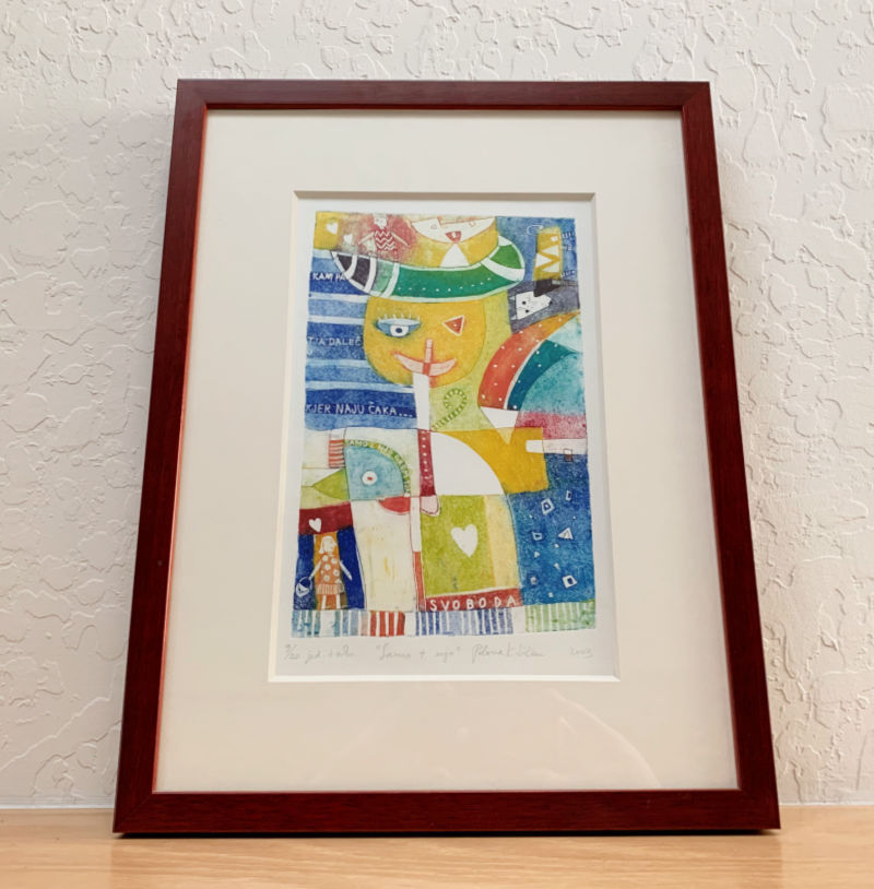 Now this numbered lithograph is right up my alley. It’s original, colorful, playful and nicely matted and framed.