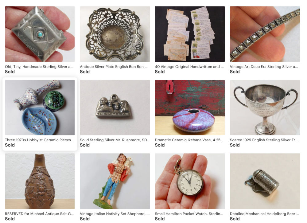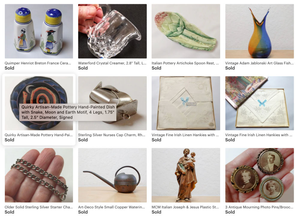 My recent solds represent a good mix of thrift store and flea market finds, along with personal items. I hope to eventually get back to more estate sales.