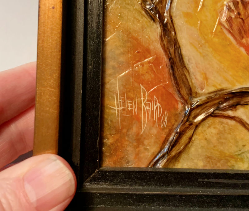 My first find was a small owl painting dated 1968 by Helen Baird. It was a charming piece that ticked all the MCM boxes–style, colors, subject matter, date!