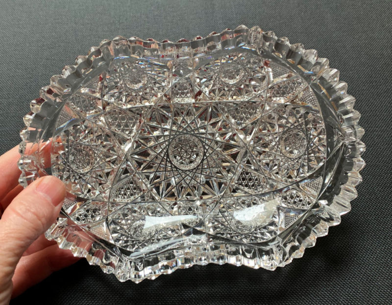 I bought this crystal dish last month because it was so heavy and lavishly cut and ticked the quality, age and beauty boxes. And the best part I believe it was made in the American Brilliant period!