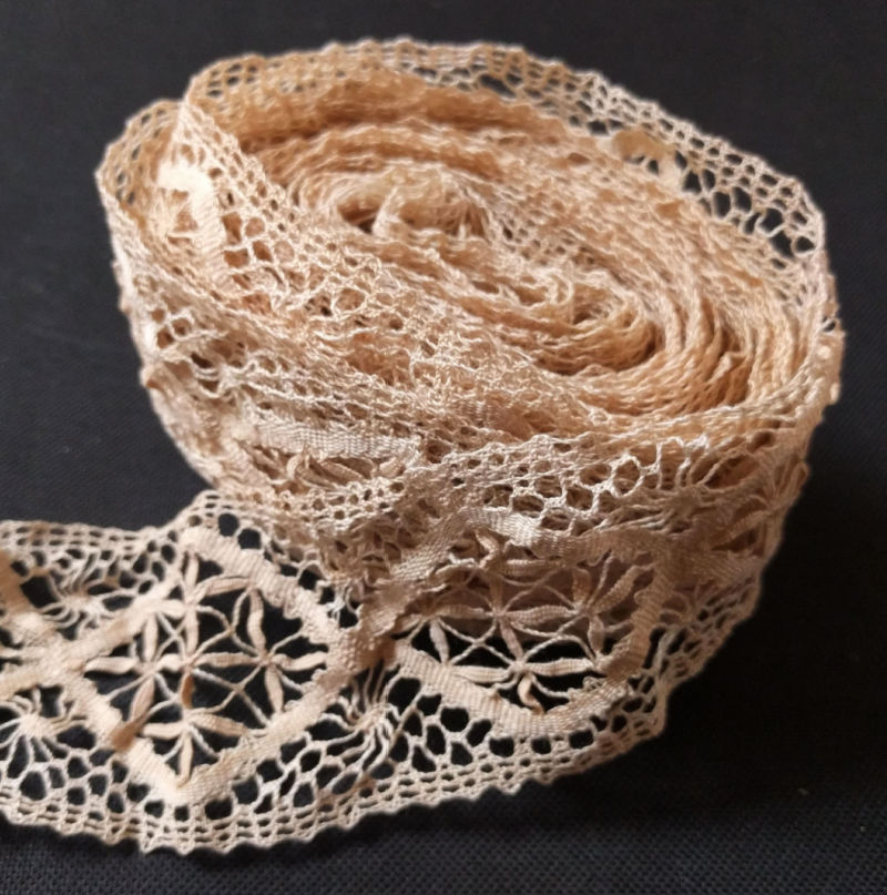 This bit of older Barmen (machine made) lace trim (beauty and quality) grabbed my attention in an antique store this summer. Definitely a long-tail item, but something I keep an eye out for.