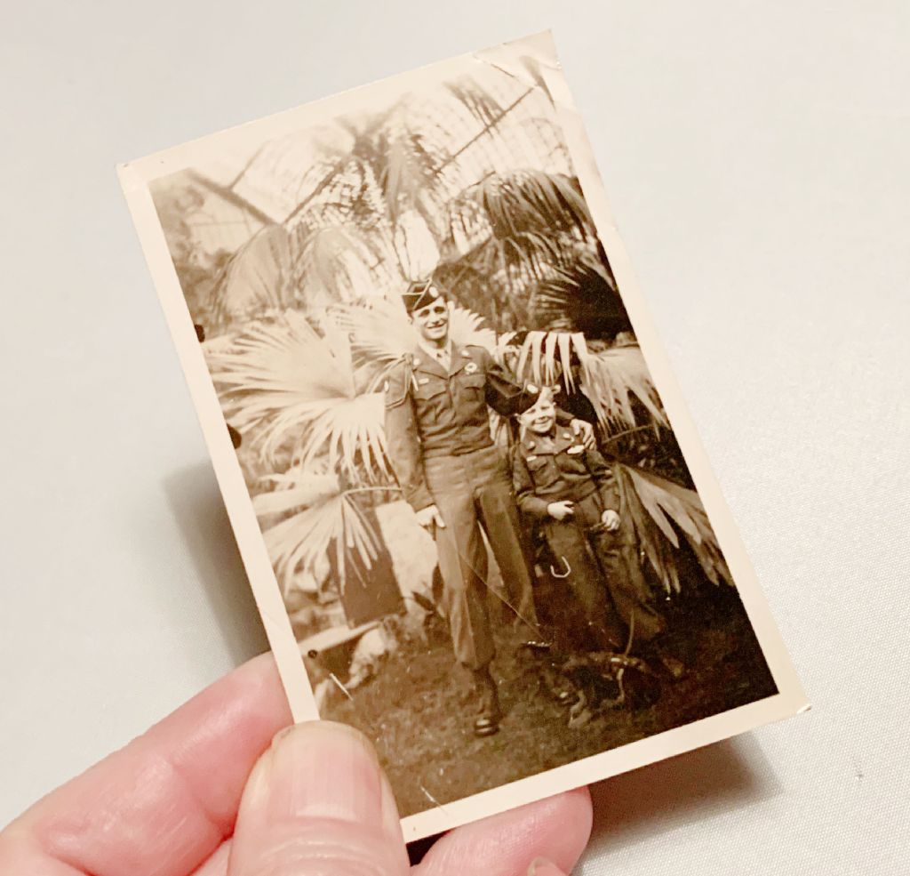I started listing with my excess vintage and antique snapshots. I collect old snaps usually buying them in lots and then put the ones I’m not keeping in a box to sell later. This time I pulled together a small lot of WWII military photos. This is the cutest one with a father and son in matching uniforms.
