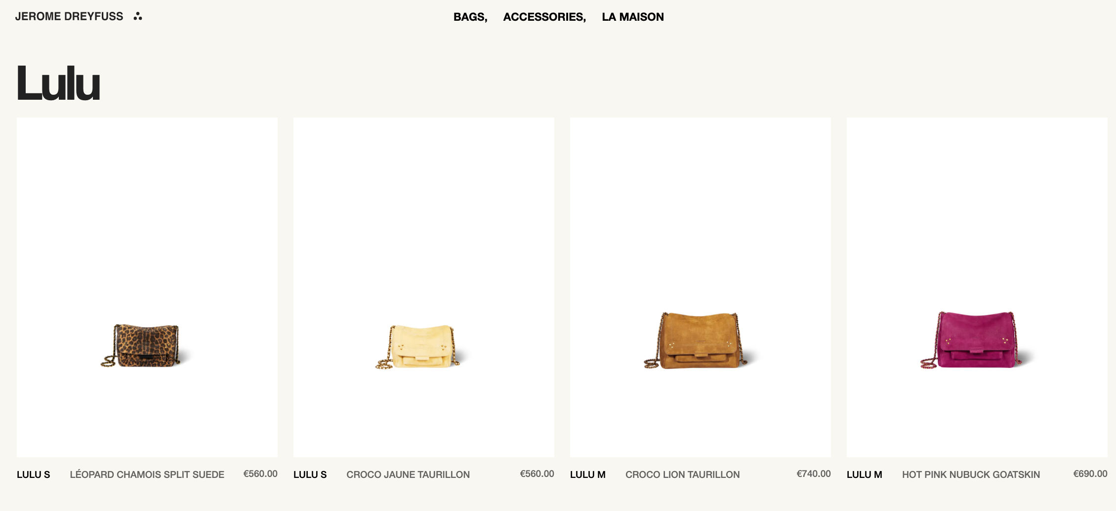 Jeez Louise, his new purses sell in the mid-to upper hundreds of dollars. Here’s a sample with Euro prices of 560 ($612 USD) to 740 ($839 USD).
