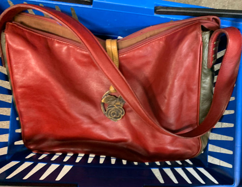 That may have been a mistake, but it looked very ’80s/early ’90s to me and a hard sell, plus prices for his pre-owned purses are all over the place. (If I remember correctly the thrift store price was around $15.) I left this for someone else.