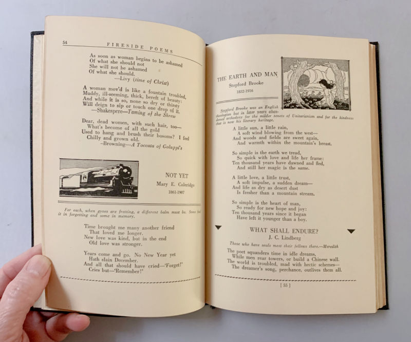 I also listed a charming old poetry book (“A Book of Fireside Poems, 1937). For the life of me I can’t remember where or when I got it.