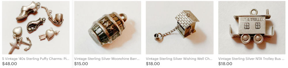 The last two days I’ve been tackling the low-value items, putting some in the donate bag as they are just not worth the effort, but listing those that are easy to store and ship and have a low shipping cost. Like my unlisted vintage sterling charms. (I think I have a good 100 or more to list!) Here are my recent additions…