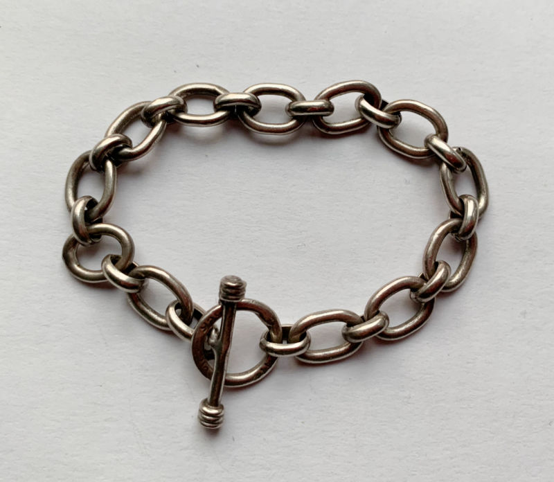 I used to love wearing this sterling silver Miss America Pageant charm. Such a quirky bit of memorabilia. Circa 1957 this award charm was attached to this sterling toggle bracelet and I decided to separate the charm and the bracelet (a small 7″) and sell them individually for $48 each.