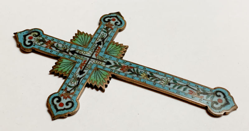 Antique (possibly19th century) double-sided cloisonne 5.5″ cross