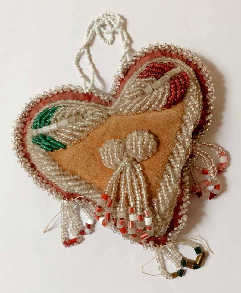 Here’s the story–I grew up in Western NY just a few miles from an Iroquois reservation and I had seen beadwork pieces like this in the local museums. (These were made in the late 1800s/early 1900s for the tourist trade.) So when I saw this one yesterday at the fair I couldn’t say no. It made my heart skip a beat. It’s not perfect, but what is after 100 years?!